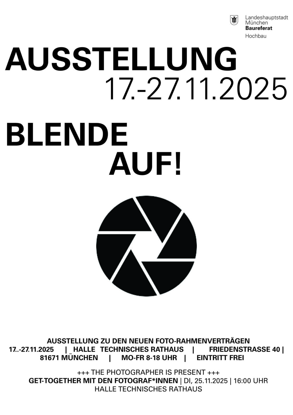 POP-UP-AUSSTELLUNG ZUM NEUEN FOTO-RAHMENVERTRAG Seit Oktober 2025 gelten unsere neuen Rahmenverträge für fotografische Leistungen. Sie bilden die Grundlage für eine professionelle, transparente und einheitlich strukturierte Zusammenarbeit mit ausgewählten Fotografinnen und Fotografen. Insgesamt wurden 18 Fotograf*innen in den neuen Vertragspool aufgenommen. Ihre Arbeiten zeigen die Vielfalt fotografischer Handschriften und dokumentieren die unterschiedlichen Facetten städtischer Baukultur –…